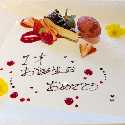 お名前やメッセージを添えた、オリジナルのデザートプレートをご用意しています。